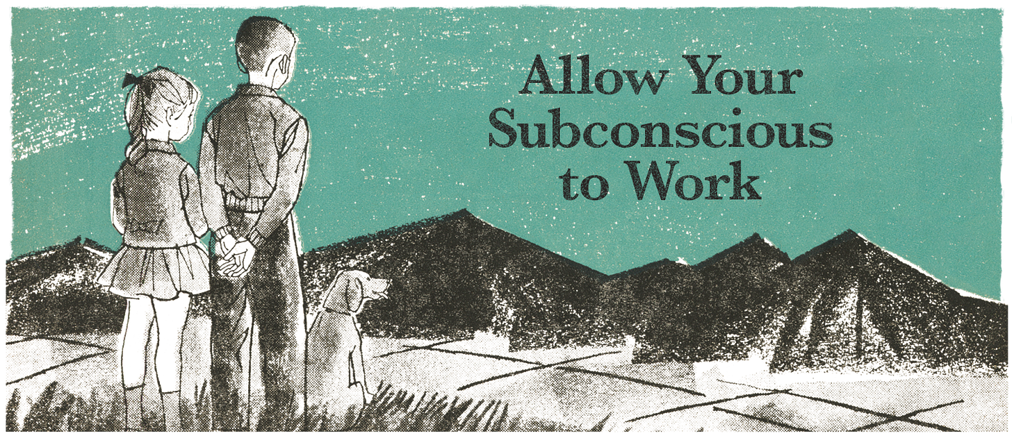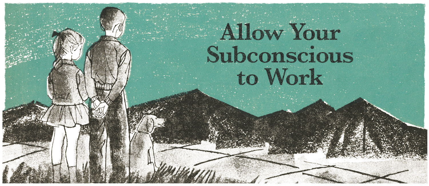 When you have a problem or a question, instead of trying to solve it by thinking, go for a walk, a swim, or a drive. Do something else. Place it in your subconscious, and forget about it. Sometimes the answer appears as you’re doing other things. That is the subconscious working on it.